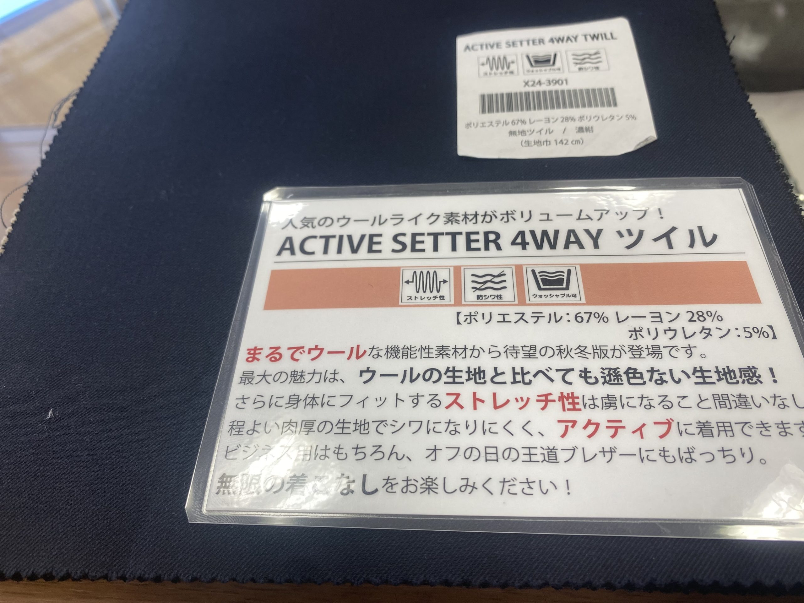 ウール素材に加えて、最近ではストレッチ素材を加えた機能性に優れた生地も準備いたしております。