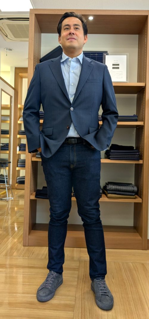 写真のボトムはデニムですが、SET-UPスーツでお作りになりました。