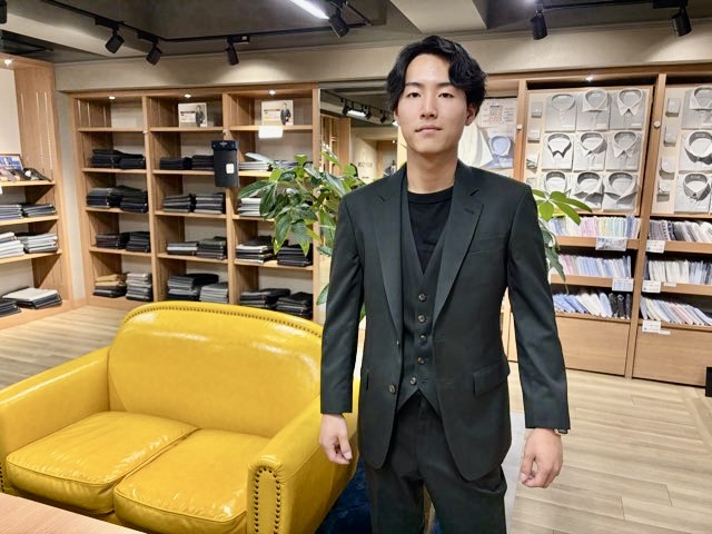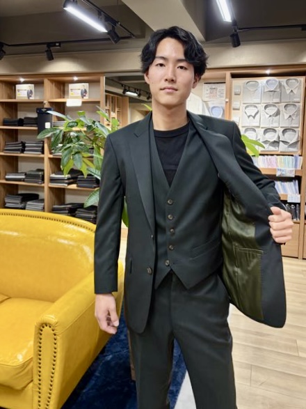 イケメンのお客様 N.M様 グリーンスーツが大変お似合いです。