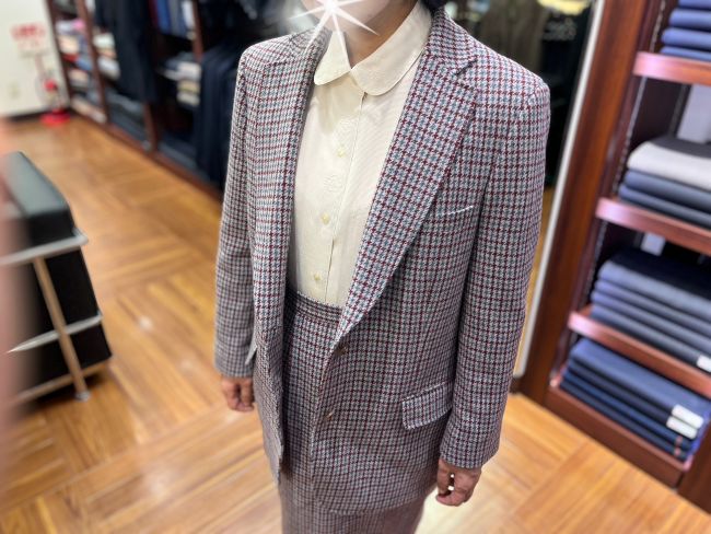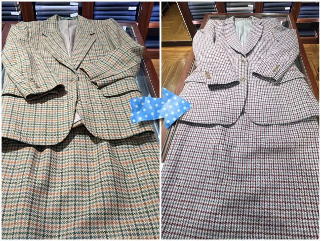 生地感や柄も雰囲気が似ていて、色違いの様なスーツが出来上がました。