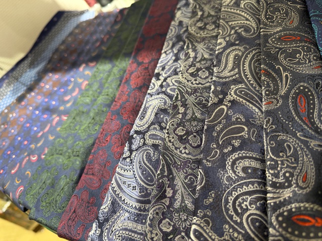 無地はもちろんオススメですが👆画像のようなペイズリー柄などの柄物ネクタイも種類豊富に取り揃えております。