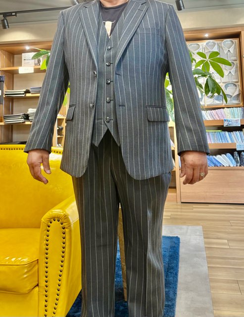 今年オーダーの多い トレンドのストライプスーツのご紹介です。