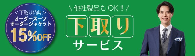 さらに下取りサービスをご利用いただくと、スーツ、ジャケットが下取りで15%OFF
