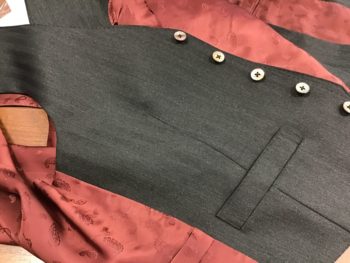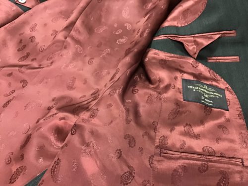 上着、ベストの裏地はレンガ色のペイズリー柄を選ばれています。