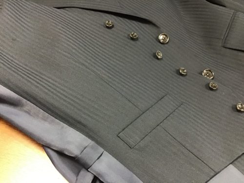 濃紺のシャドーストライプの生地を選んでいただきました。