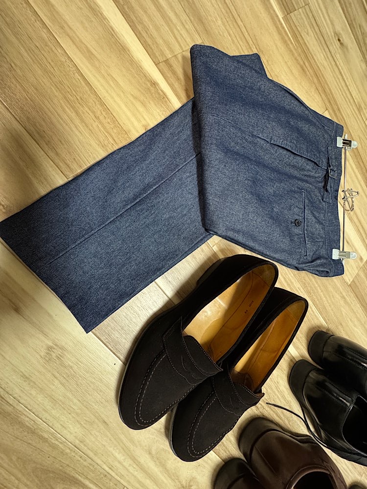 そんな時はデニム生地を使ったスラックス仕立てだと良い塩梅かも知れません。
