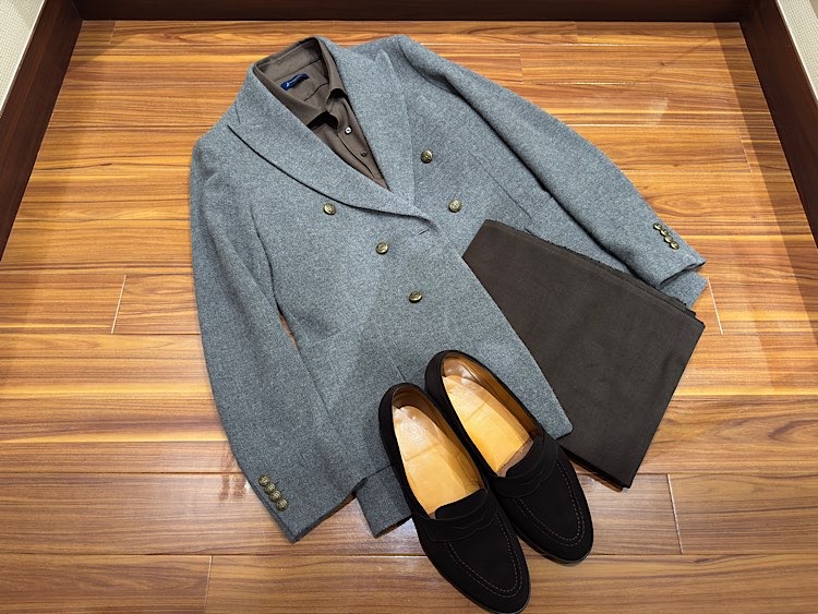 ジャケットはカシミヤのダブルジャケット