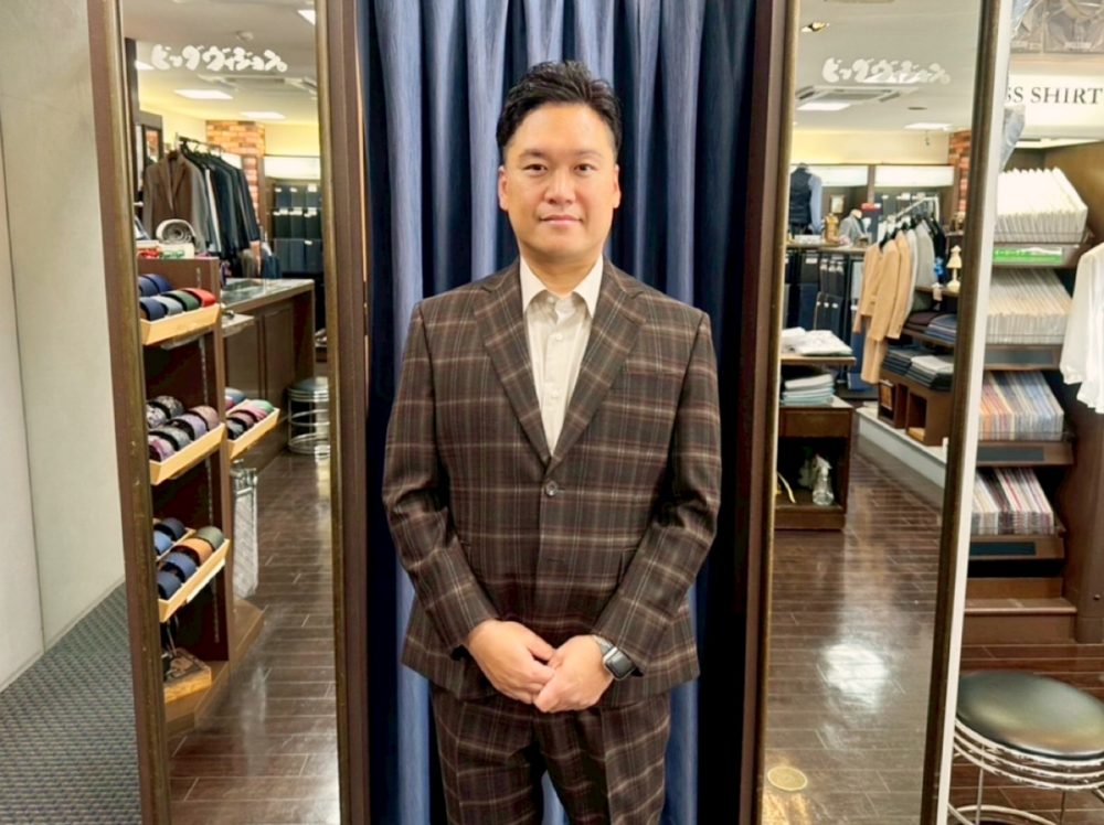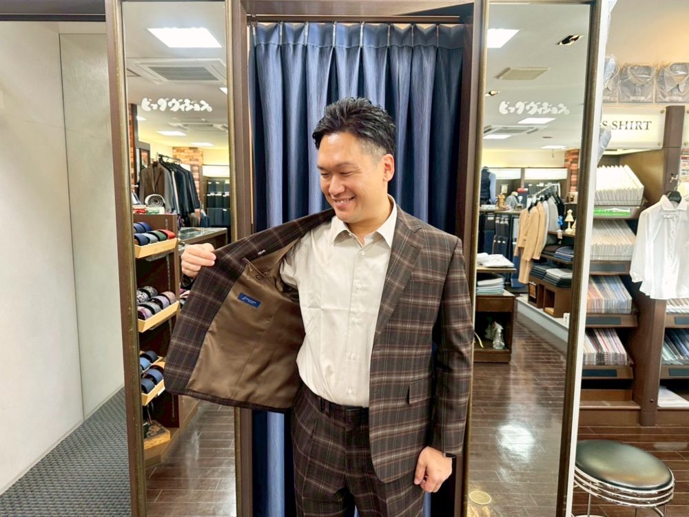 内側の裏地やオーダーシャツが同系色でベーシックにまとまっていますね。