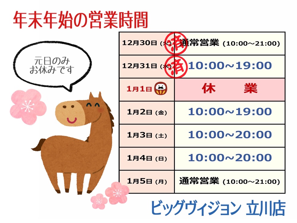 本年も、ビッグヴィジョン立川店を、何卒宜しくお願い申し上げます。