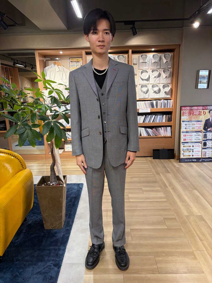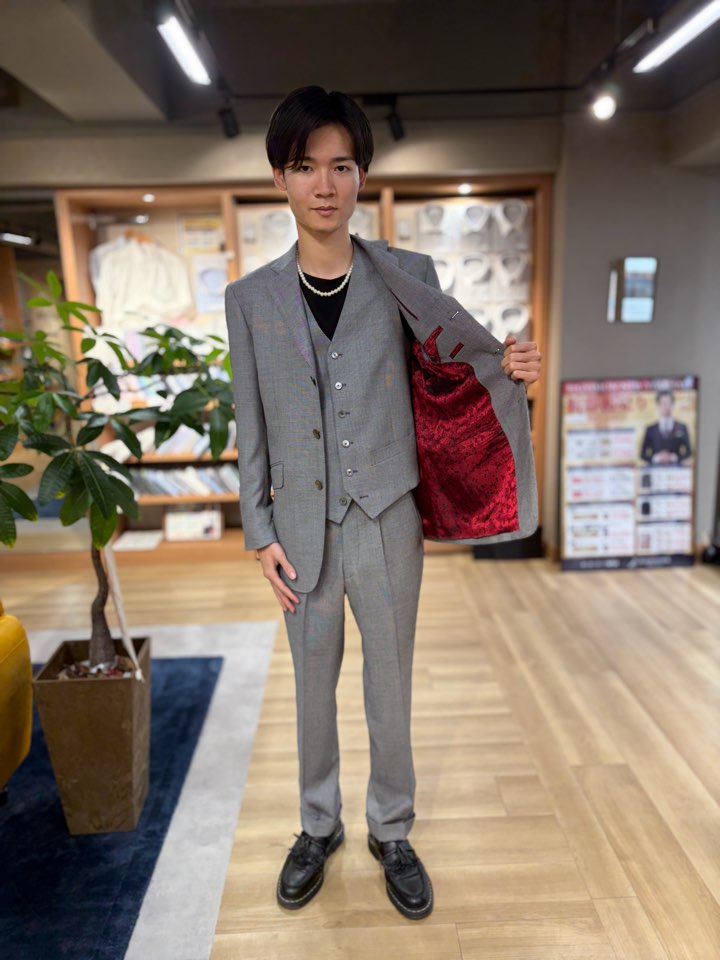 一見すると上品で落ち着いたライトグレーのスリーピース。