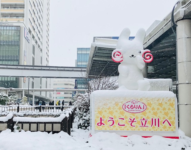 ↓ くるりんも雪まみれ……🥶立川駅前もキンキンに冷えてました。