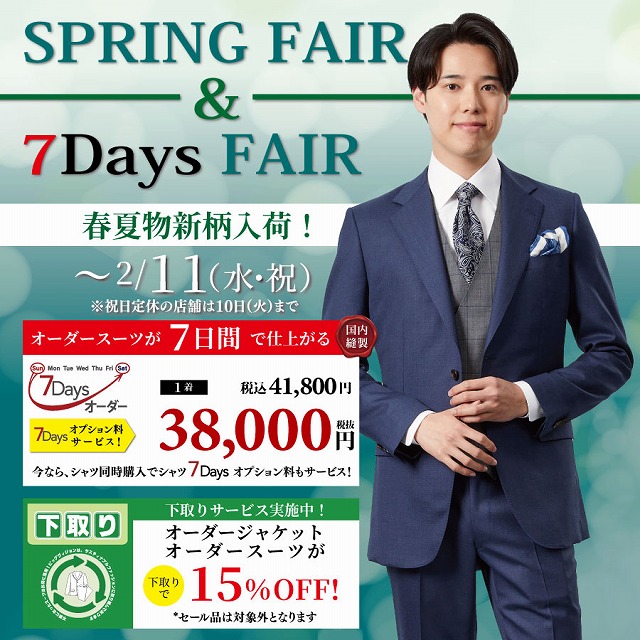 (※一部7Daysオーダー不可の生地・仕様、天候不順による便の遅れが発生する場合もございます)