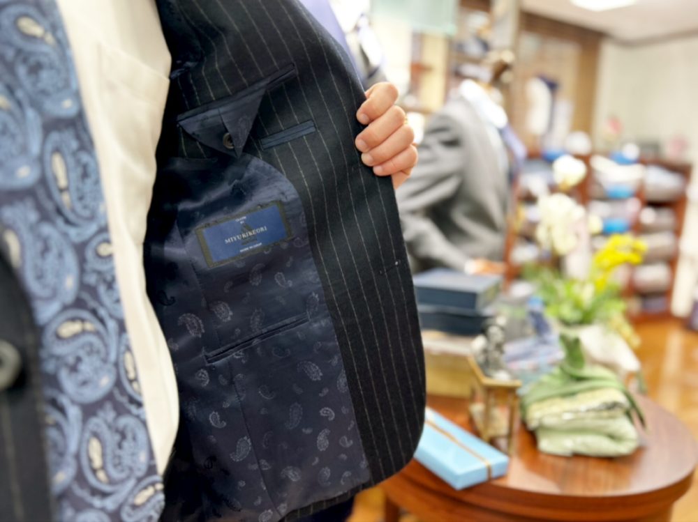 裏地は同系色のキュプラ素材で袖通りも良く仕上がりました。