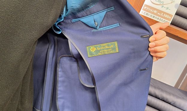 上着の裏側の仕様は、アンコン仕立てで通常仕立てと違い、肩パット、芯地、