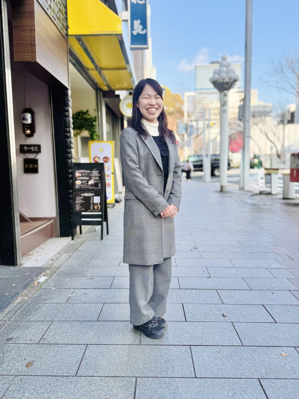写真だとグレーっぽく見えますがグリーンベースのグレンチェックです!