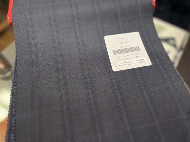 今回ご購入いただきましたのが、こちらのネイビーウインドペンの生地です。