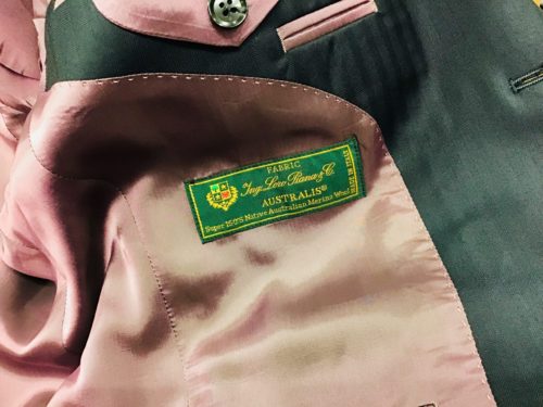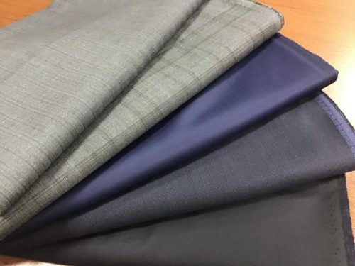 カシミアにも近いスーパー150(16ミクロン)という細くしなやかな原毛で織られた服地は