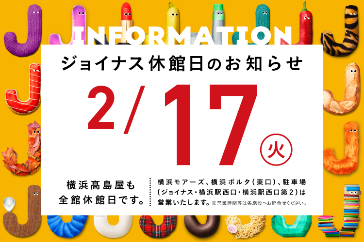 ジョイナス全館休館の為、ジョイナス店はお休みさせていただきます。