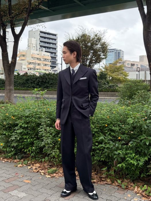 華やかなシーンから、ビジネススーツには勿論、ジャケパンスタイルにも使える、実は万能な衿型なのです!