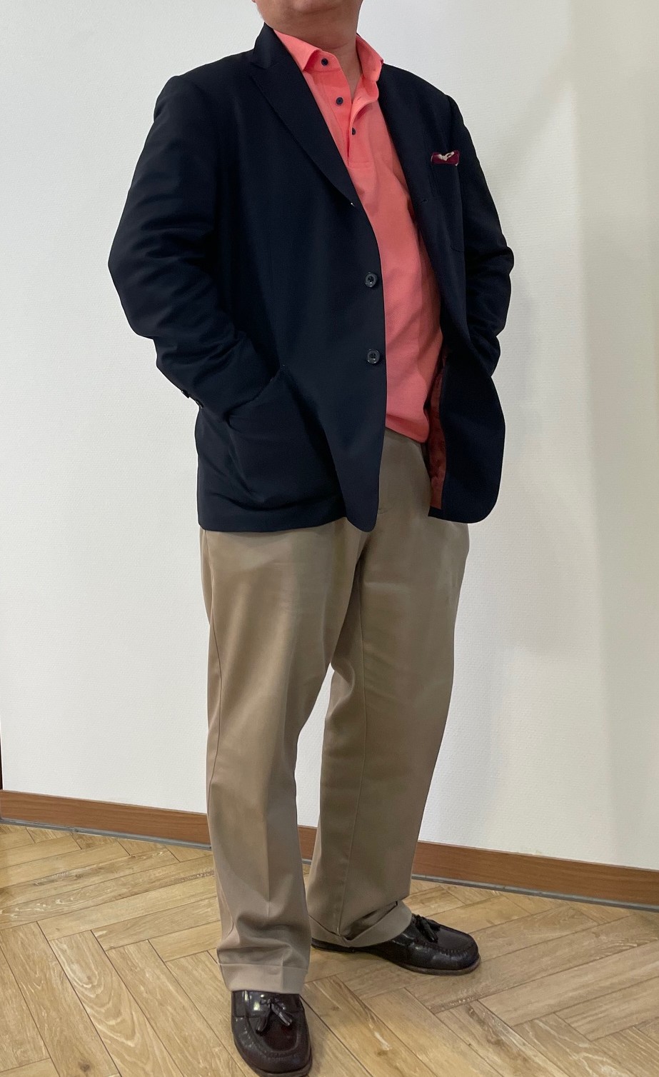 少し寒く感じる時間帯は、上に紺ブレを羽織って大人っぽくコーディネイトしようと思っています。