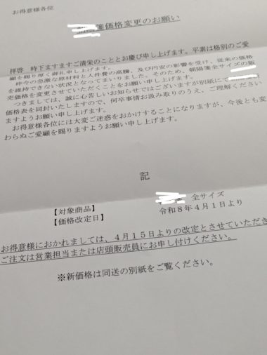 (いつも使っている)本画仙紙(作品用の紙)が値上げになりますと書かれています💧