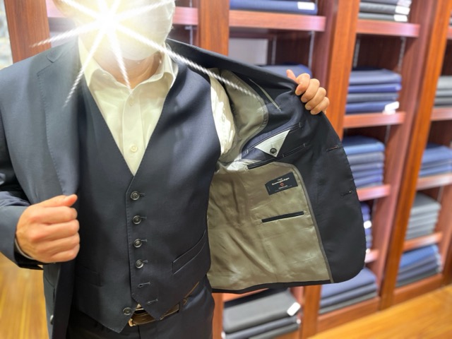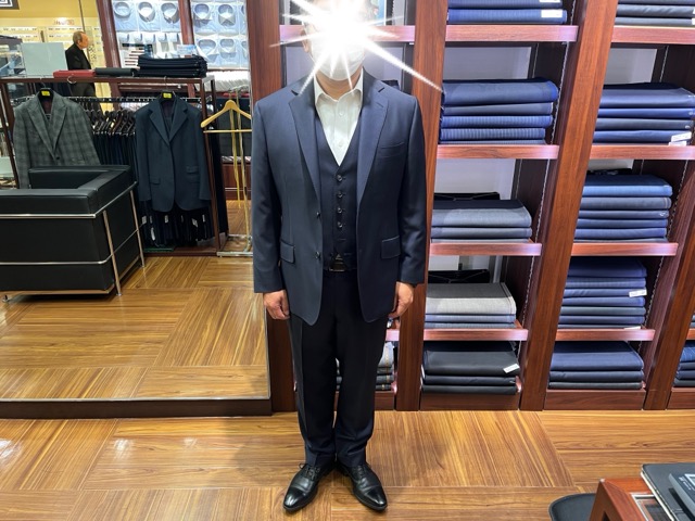 今回ご注文いただきましたのが、紺無地のスリーピースをスペア付きで・・・