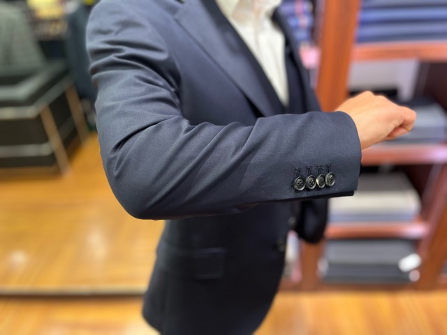 今回カスタム仕立てでお仕立ていただきましたので、釦は水牛釦です!