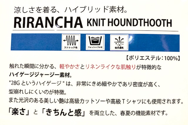 非常にきめ細かく密度が高い〝ハイゲージジャージー素材〟ということで……その軽さと伸びに相当驚きますよ。