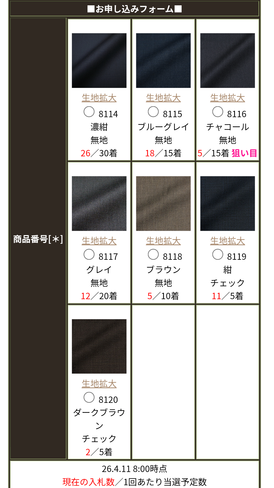 予定数をもう超えて入札が入ってる生地がありますね。危険です。。。。
