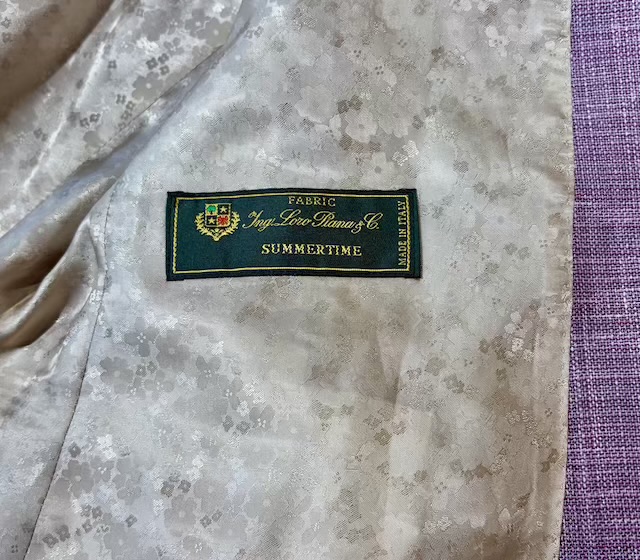 ウール68% シルク20% リネン12%の大変しっとりとして軽い生地でお作りさせていただきました。