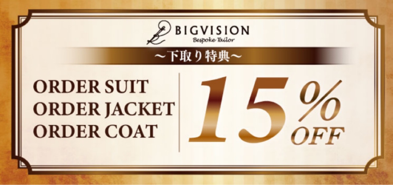 ・割引の対象商品は、「スーツ」・「ジャケット」・「コート」となります。