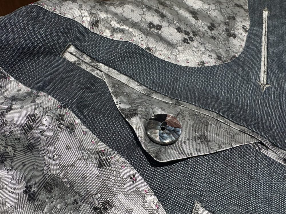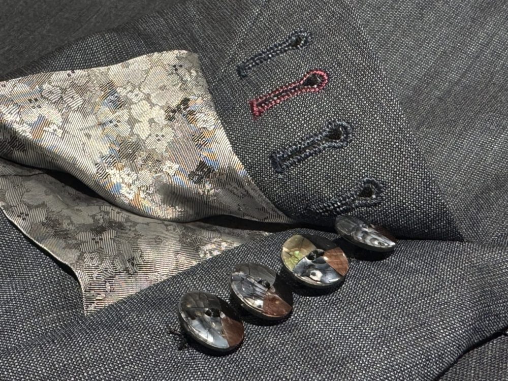 個人的にこの生地好きで何人かお客様にオススメさせていただいてますがグリーンなんです。