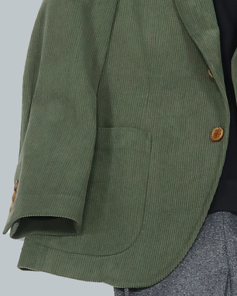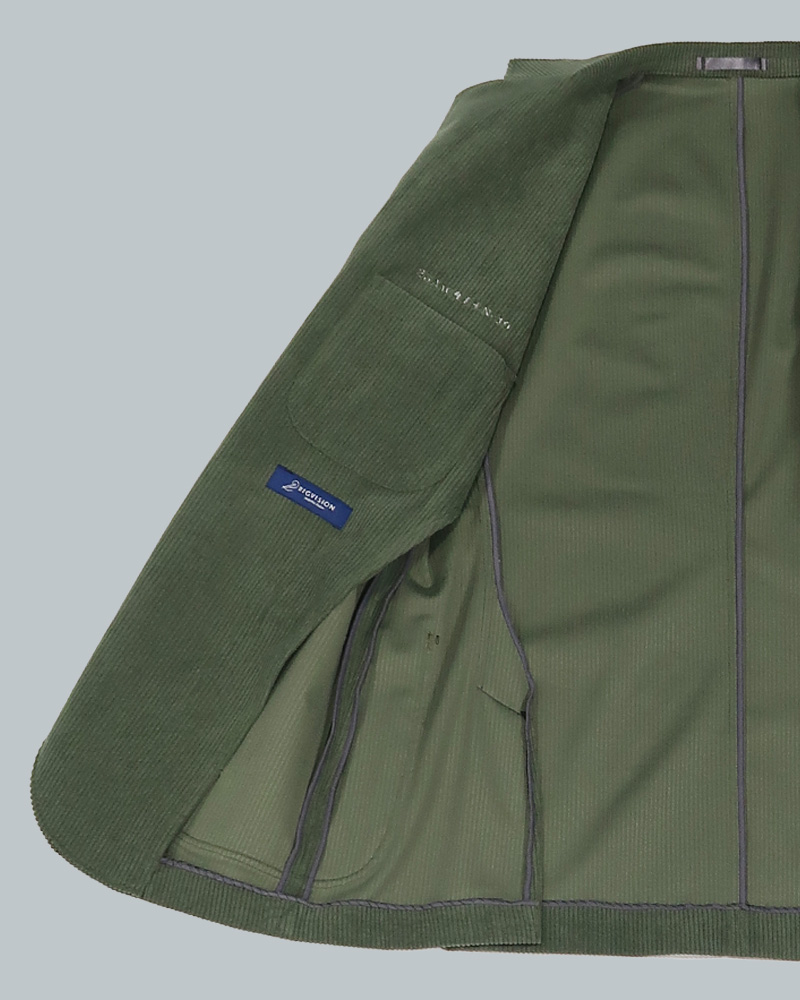 経編機でコーデュロイの畝を表現し編み特有の柔らかさを持つ素材。表面の畝部分のみを起毛し肌触りにもこだわっています。毛房が抜けずコーデュロイでは難しいストレッチ性も兼ね備えています。