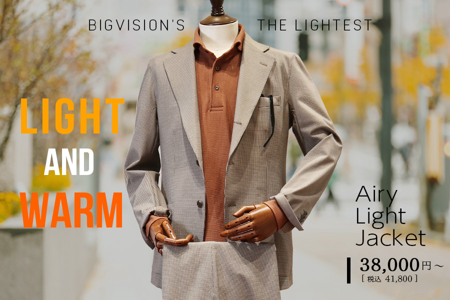裏地、袖裏、芯地、縫代を極限まで省き、ビッグヴィジョン史上最軽量ジャケットの秋冬商品のご紹介です。