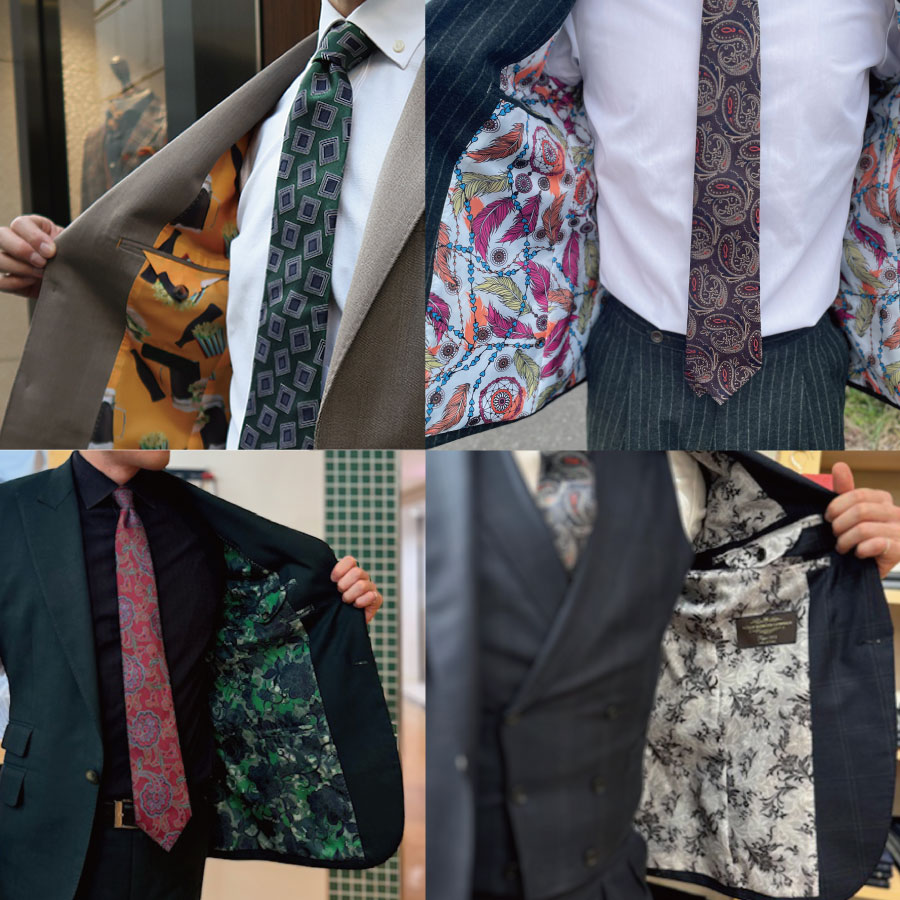 普段は見えない裏地こそ、“自分らしさ”を表現するチャンス!華やかな柄や好きな色を選んで、スーツの内側に個性をプラス。