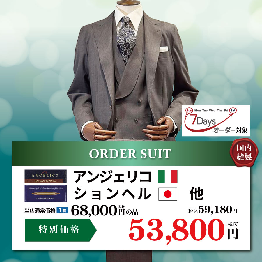- ⇒オーダースーツが7日間で仕上がる7Daysオーダー!オプション料サービスで38,000円(税込41,800円)国内縫製