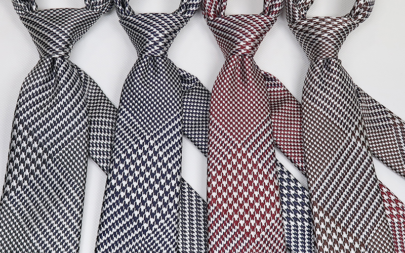 天然素材(シルクやウール)を高密度で使用したネクタイは、上品な光沢と柔らかさを持っています。