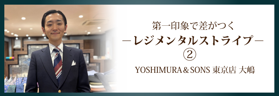 レジメンタルは、定番色ネクタイと勘違いされがちですが、ビジネス使いのイメージに抜け感を作り、さらには秋冬コーディネートとの相性の良さも向上させます。