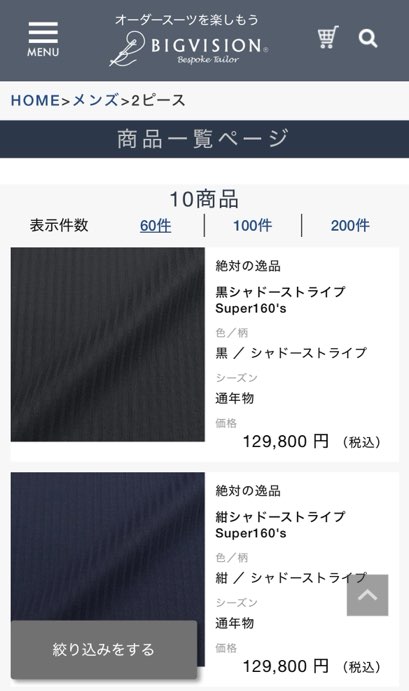 店頭ではもう少しご用意がありますが、ビッグヴィジョンではその多くが春夏、秋冬と区分されています。