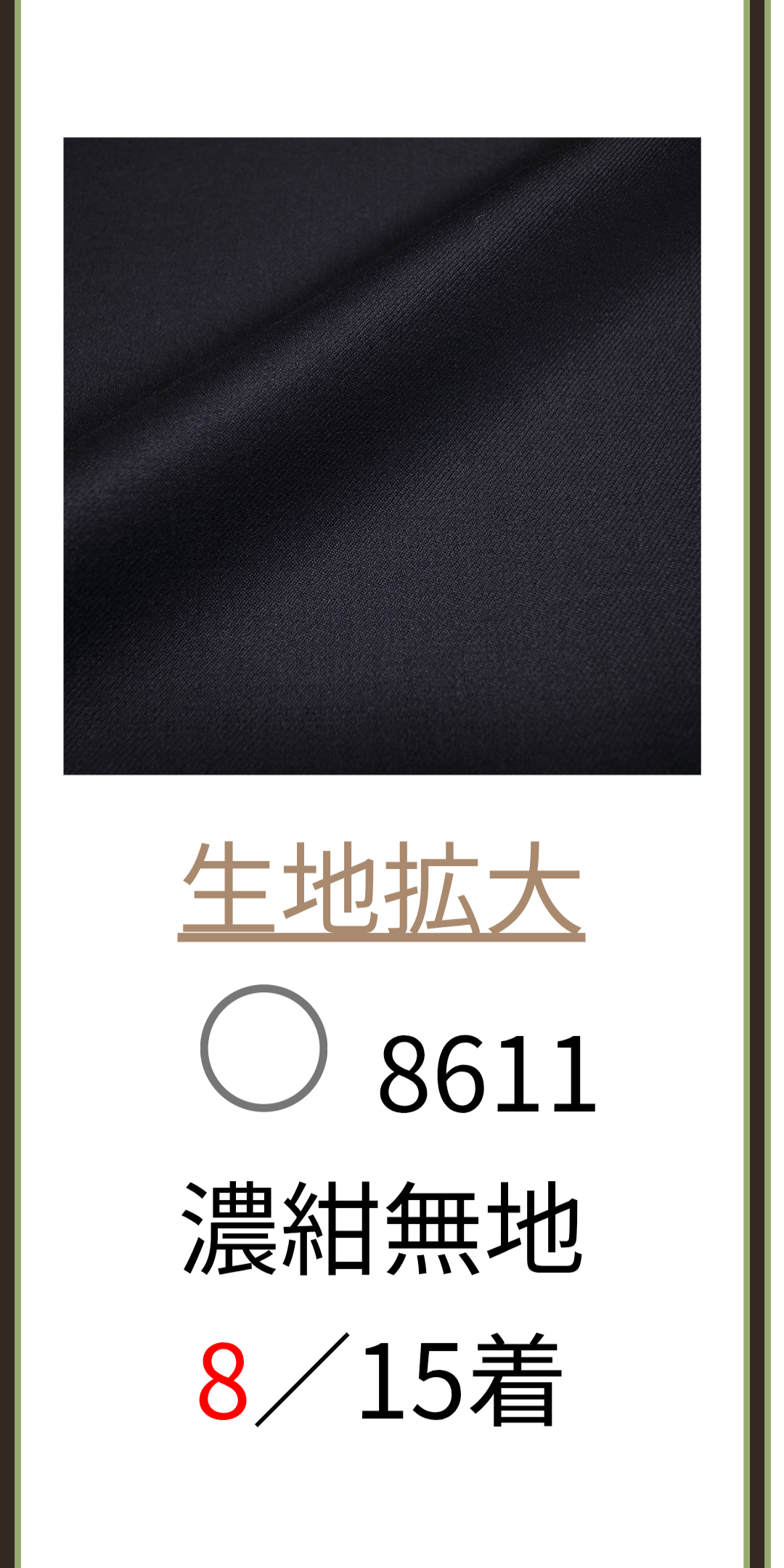 昨日(10/2)応募スタートしてますが、毎度の紺無地人気ですね。10/3の9時の時点の入札数は8/15着です。(15着の用意に対して8件の応募ってことです)
