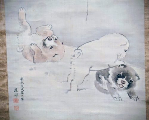 「雪柳狗子」(せつりゅうくし)お菓子のパッケージなどにも使われる子犬の絵です。