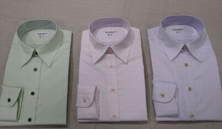 レディースワイシャツも、衿型や色釦を合わせてご自身好みの1枚をお作りいただけます。