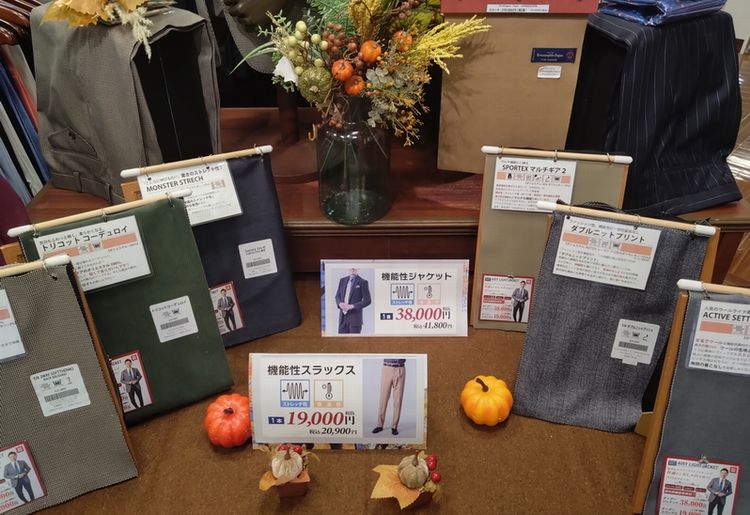 秋冬機能性素材ダブルニットプリントのレディーススーツのご紹介です。