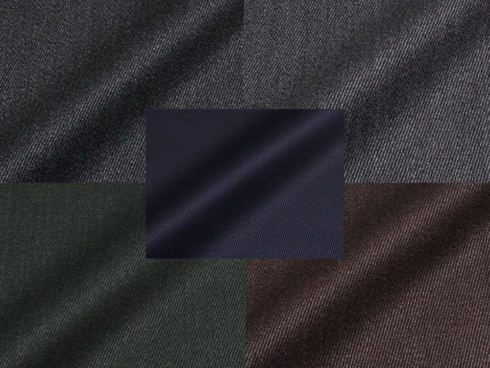 色柄は濃紺、チャコール、グレイ、ダークグリーン、ブラウンのツイル5色です。