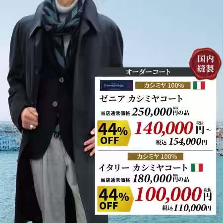 E.ゼニア・カシミア100%オーダーコートが大変お得です!
