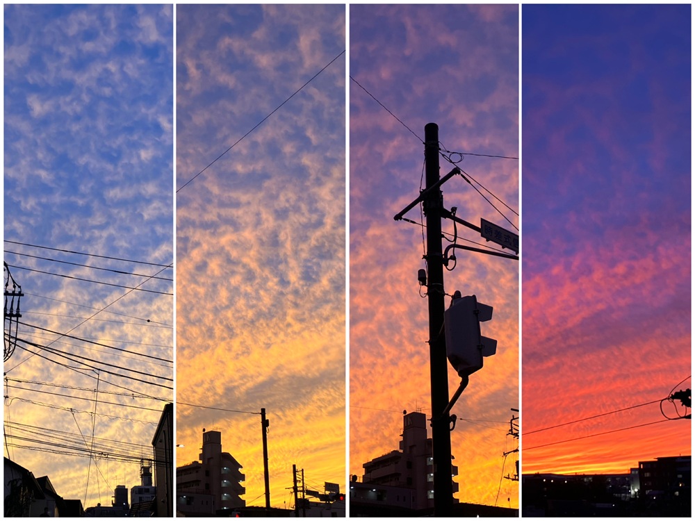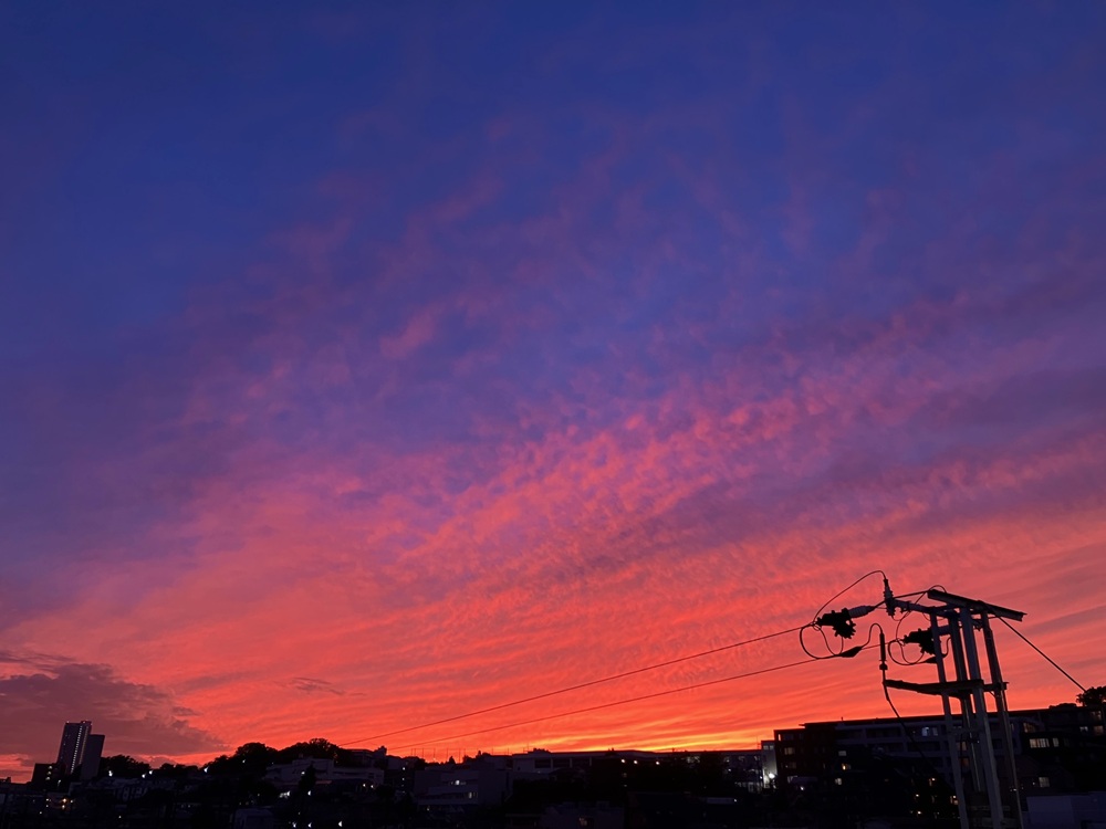 先日、久しぶりに連休をいただいたので、気の向くままに自由に過ごしていたのですが 買い物ついでに散歩をしていたら、ちょうどその日は夕焼けが燃えるように綺麗でした。SNSに写真を上げている方も多かったです。