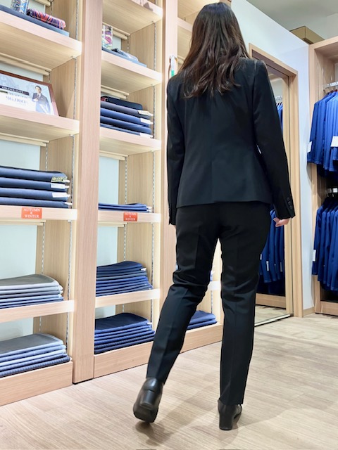 ⇒ お客様のスーツが仕上がりました✨✨紺無地のレディースパンツスーツ!(2025.06.03)