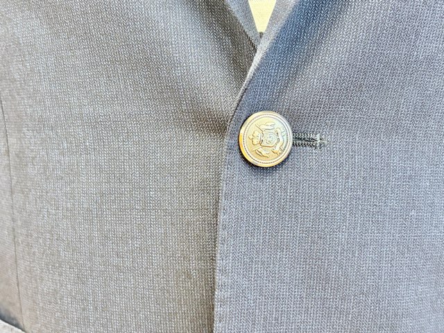 スーツ素材のアウトポケット、メタル釦のジャケットです。