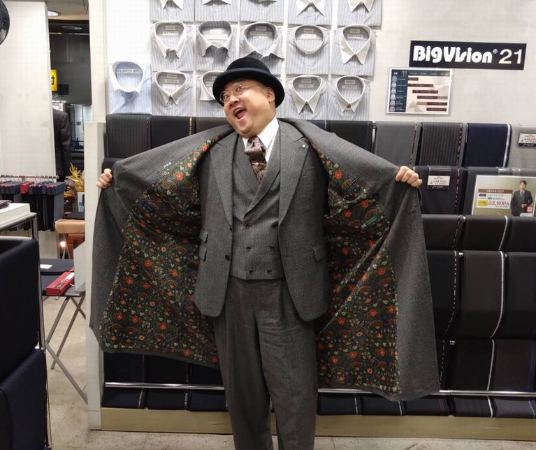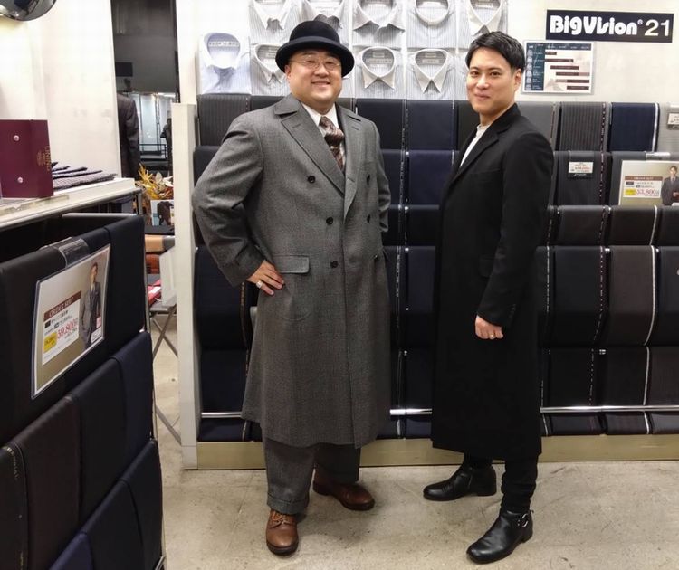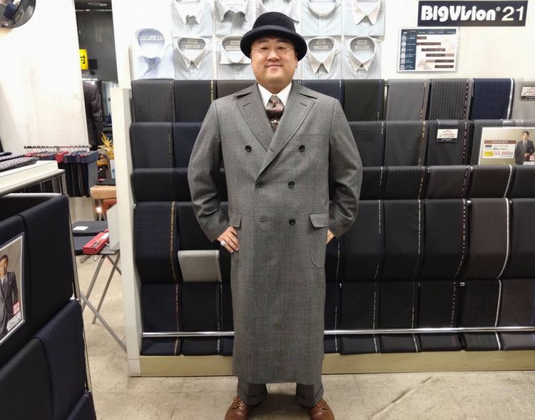 以前スリーピーススーツでもお作りいただいたWOOD HEADの同生地でコートをお仕立ていただきました。