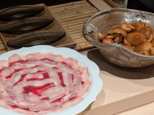 この時期らしく 月の輪熊と天然なめ茸の鍋や熊の手の白味噌仕立てなど温まりながら栄養補給です。